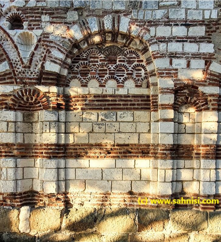 Previous post covered the list of main churches in Nessebar, along with the transformation of their plan from 3-aisle to cruciform. But the beauty of these churches lies in the lavish unique decorations, especially of those built during the 13th and the 14th centuries, during the Second Golden Age of Bulgarian Culture, during the Second Bulgarian Empire. There are common motifs and building methods that hint towards the same workers who participated in the building process. These monuments are very good examples of the Artistic School of Tarnovo from the Bulgarian Second Empire, what we will henceforth call as the Tarnovo style.