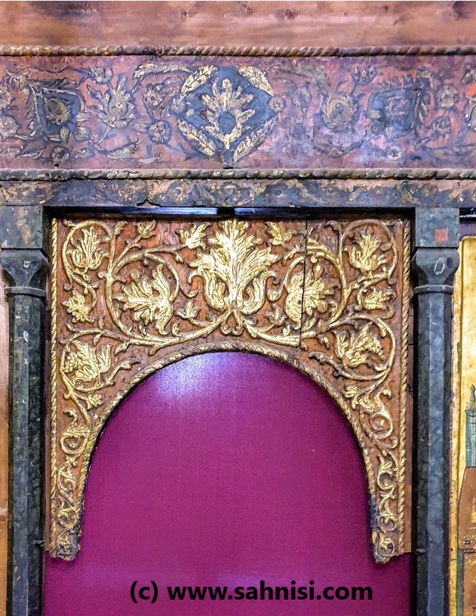 Similar to the previous Islamic art patterns, there are colored motifs on the walls, from the same 16th century period. These are different from the Islamic art you would typically find in the Ottoman mosques and are closer to the original Persian or Indian pieces of clothing.